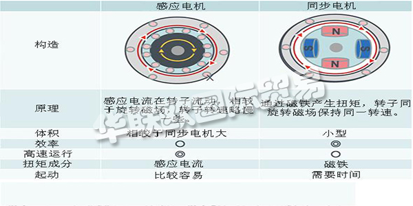 同步電機(jī)同感應(yīng)電機(jī)最大的區(qū)別就在于是否運(yùn)用磁鐵。感應(yīng)電機(jī)不運(yùn)用磁鐵經(jīng)過(guò)感應(yīng)電流發(fā)生扭矩。但是相較于同步電機(jī),功率大概低10%-30%。