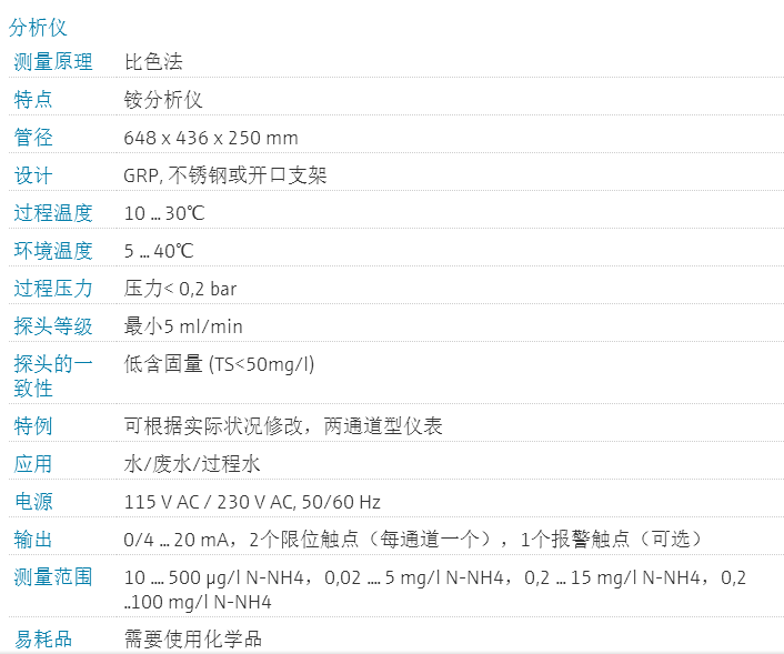 E+H氨氮分析儀使用一體化光度比色法測量系統(tǒng),應用于污水處理凈化與監(jiān)控,活性污泥池監(jiān)控,自來水凈水監(jiān)控,工業(yè)廢水過程監(jiān)控等。