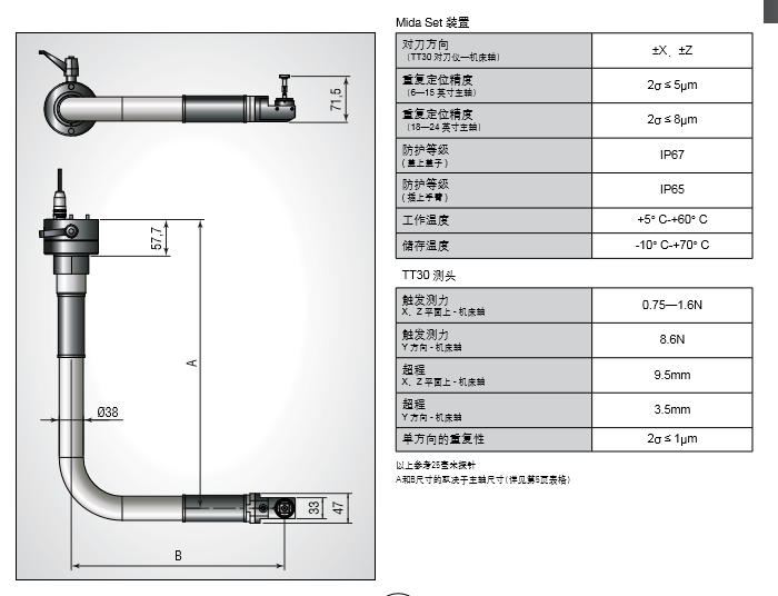 MARPOSS對刀臂產(chǎn)品參數(shù):